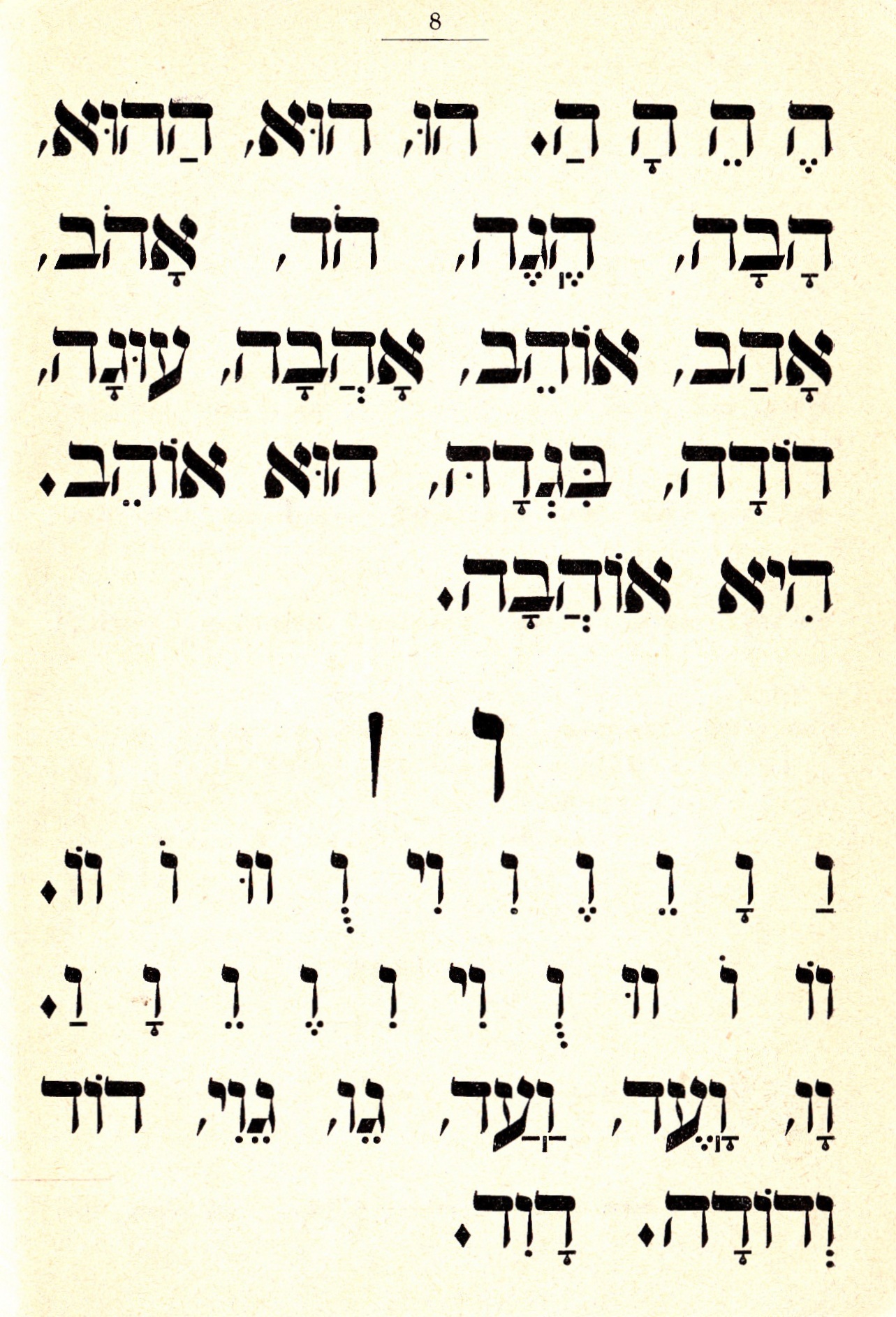 עיון בחומרים מעלה מיד את הדומה, את המאפיינים שלא השתנו. לומדים לקרוא עברית על-ידי לימוד צורת האותיות המנוקדות. כלומר, כל אות נלמדת כשהיא מנוקדת בקמץ, בפתח, בסגול, בצירה וכו'. למעשה, התלמיד רך השנים לומד לבטא הברות. הלימוד משלב זיהוי צורות וחזרה על צלילים. התבססות הקשר בין הצורה הכתובה והצליל הוא הבונה את מיומנות הקריאה. היום, כשאנו רואים את הספרים, את החוברות והאת הדפים, וכולם עמוסים אותיות עבריות מנוקדות, בסדר קבוע, קל לנו לדמיין את מקהלת הקולות הדקים החוזרת אחר המלמד: "אלף קמץ, AH, בית קמץ BAH…"