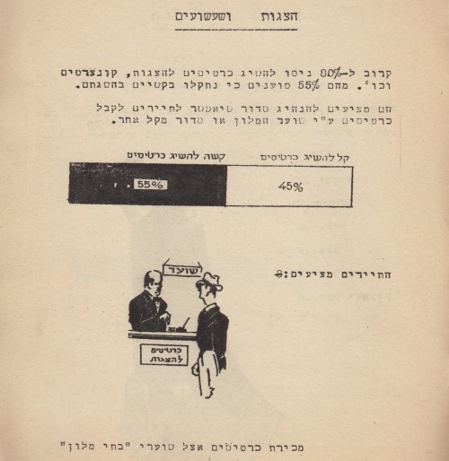 כאן תוכלו להציץ בדפי החוברת, להתרשם מהשירותים לתיירים בימי קום המדינה ולגלות מה חשבו המבקרים מארצות חוץ שהתאכסנו בארץ בבתי מלון מסוג א'.